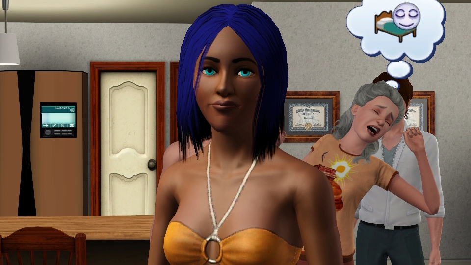 Lucy Friendly’s traits are Over-Emotional, Disciplined, Vegetarian, Virtuoso, and Eco-Friendly. She earned the Nurturing trait with one of the social groups. Her Lifetime Wish is to become a One Sim Band.