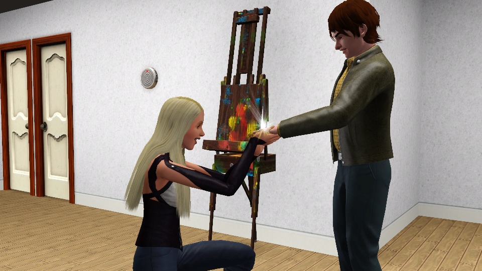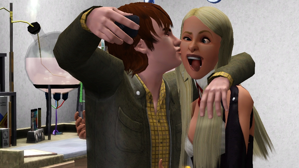 Shaun just put her back down on her feet. She had leaped into his arms.
