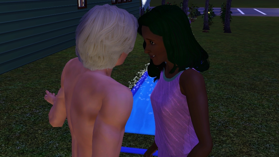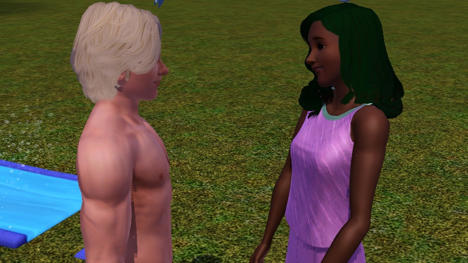 Lucy was watching Sheldon on the water slide and liked what she saw. She started flirting with him.