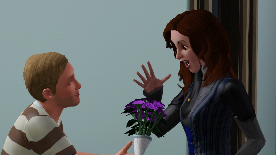 Brian said something to Sheri, and this was the next thing they did. My guess is that he complimented her and was proud of her reaction. I love those pants! He looks so charming.