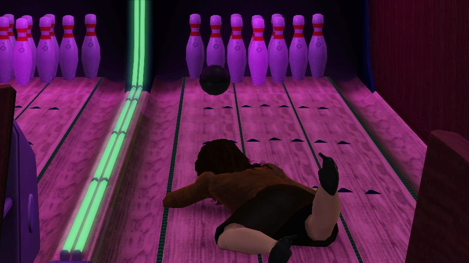 Sheri wasn’t having the best luck. Maybe she shouldn’t have worn heels. She only knocked down one pin.
