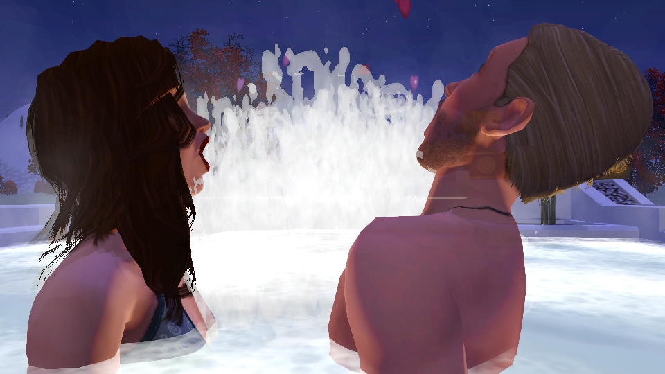 Sheri and Brian are having a breath holding contest in the hot tub.