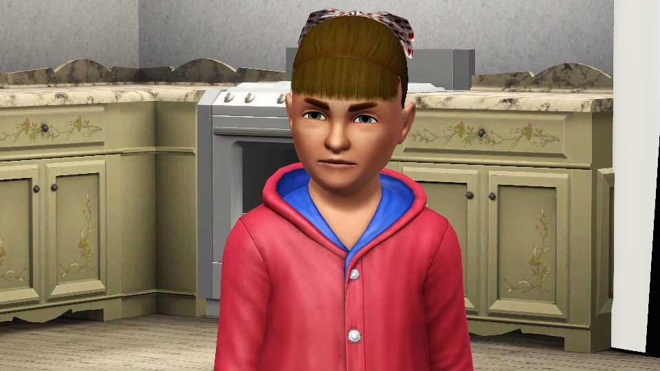 Tracy friendly celebrated his birthday and is now a child. His traits are Slob, Loves the Outdoors, and Kleptomaniac.