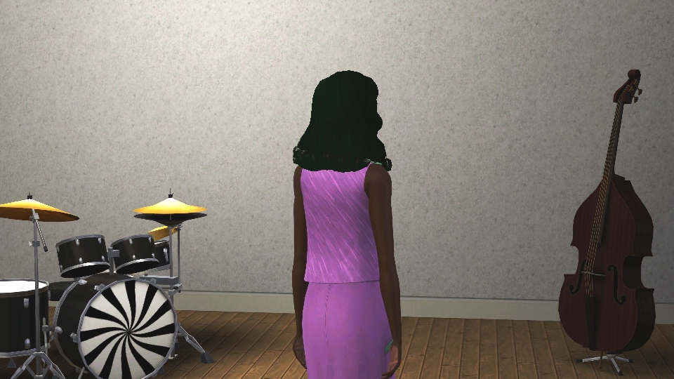 Lucy is more than halfway to completing her Lifetime Wish of becoming a One Sim Band. She has mastered guitar and piano, and is level five in bass, and almost level 5 in drums. She is going to practice bass some more.