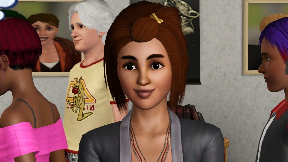 Anne McKnight celebrated her birthday and is now a young adult. Her traits are Loves the Outdoors, Party Animal, Athletic, Snob, and Artistic. She likes French music, cheese tofu steak, and the color hot pink. Her Lifetime Wish is to Reach level 10 in the Military career track. She is currently at level 1.