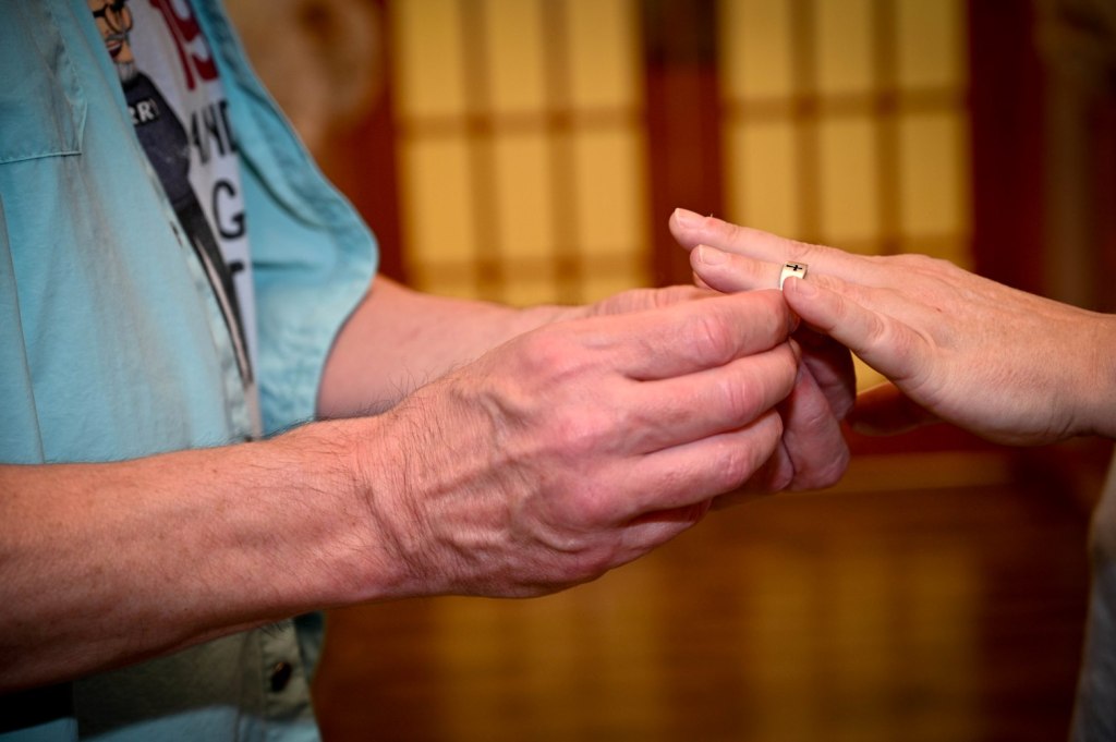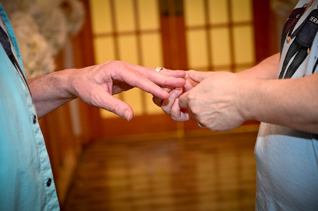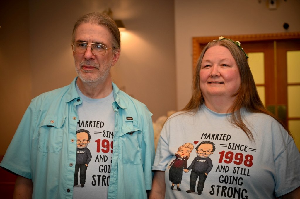 The vows went well. It was a casual affair. We both wore graphic tees that we purchased to commemorate our anniversary. I wore a flower circlet.