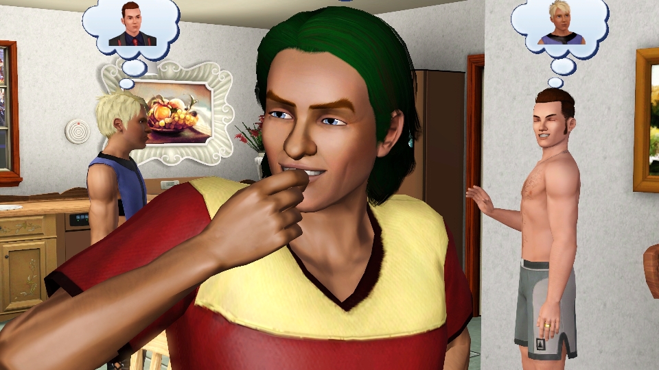 Shea McKnight-Bohannon, son of Domingo and Anne, is now a teenager. His traits are Loner, Genius, Artistic, and Evil. He likes Island Life music, falafel, and the color purple. His Lifetime Wish is to become an Alchemy Artisan.