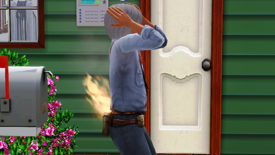 Dawn came out and used the fire extinguisher on Edward. As soon as the flames were out, he disappeared from the property.
