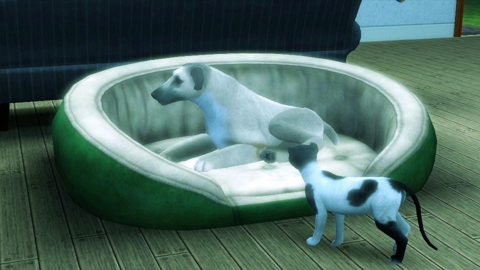 Zoey has grown into his bed and Kerri is no longer a kitten.
