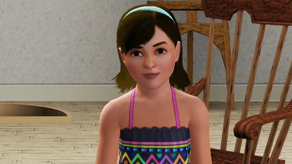 Jeanie McKnight-Meeks is now a teenager. Her traits are Couch Potato, Good, Socially Awkward, and Loves the Outdoors. She likes Songwriter music, veggie rolls, and the color Irish green. Her Lifetime Wish is to become a Scientific Specialist.