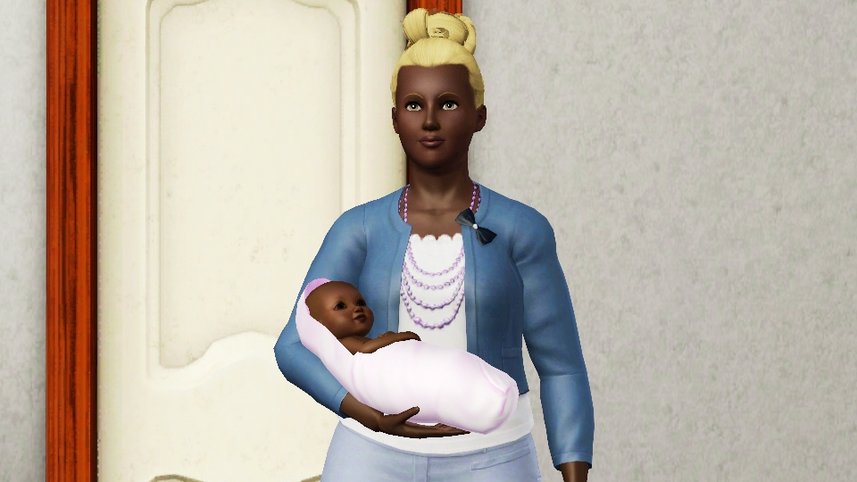 Sadie McKnight-Meeks, daughter of Seneca and Joan, is now a young adult. Her traits are Neurotic, Over-Emotional, Good, Grumpy, and Born Saleswoman. She likes Island Life music, lobster thermidor, and the color grey. Her Lifetime Wish is to become a World Renowned Surgeon. She got a job at Aedan Memorial Hospital in the Medical career.