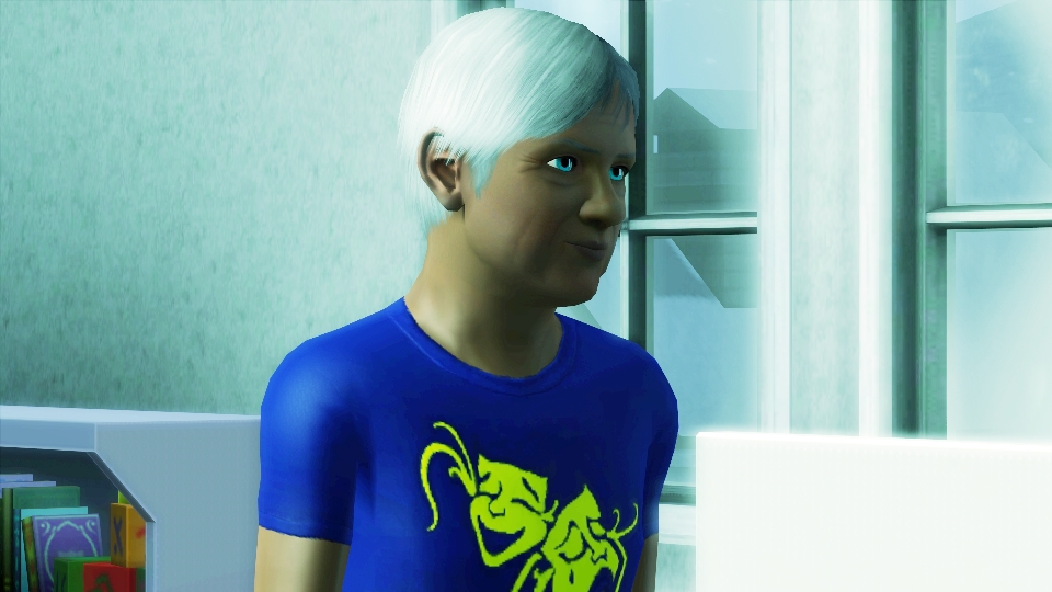 Fabian Friendly-McKnight is now a teenager with raging hormones. His traits are Can’t Stand Art, Disciplined, Athletic, and Mooch. He likes Island Life music, ratatouille, and the color spice brown. His Lifetime Wish is to become a Seaside Savior.