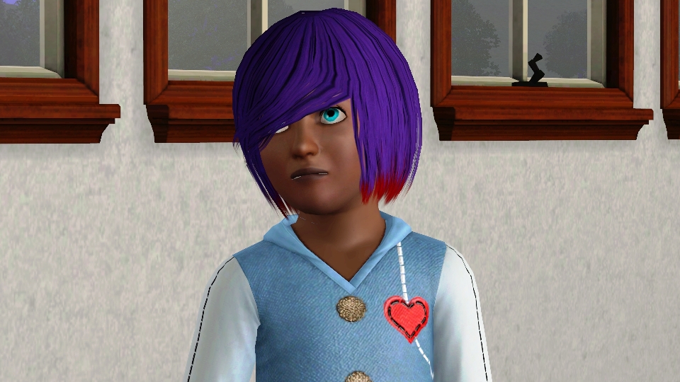 Leslie Friendly-Cotton, daughter of Fidel and Rayna, has reached her teen years. Her traits are Neurotic, Loves the Outdoors, Excitable, and Animal Lover. She likes Classical music, cheesesteak, and the color orange. Her Lifetime Wish is to be a Grand Explorer.
