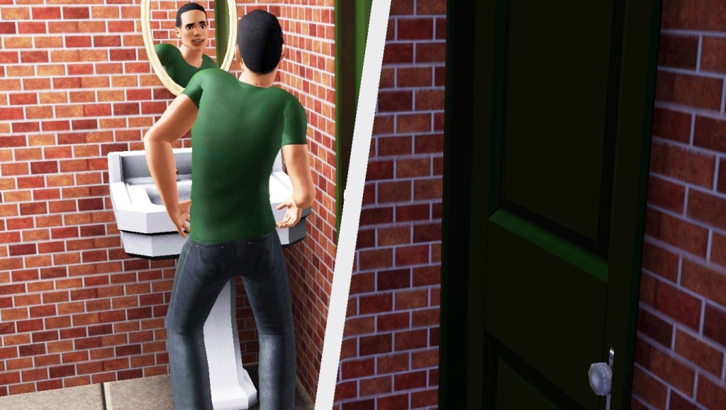 Jeremy spent his time talking to himself in the public restroom while Bella made a new friend.