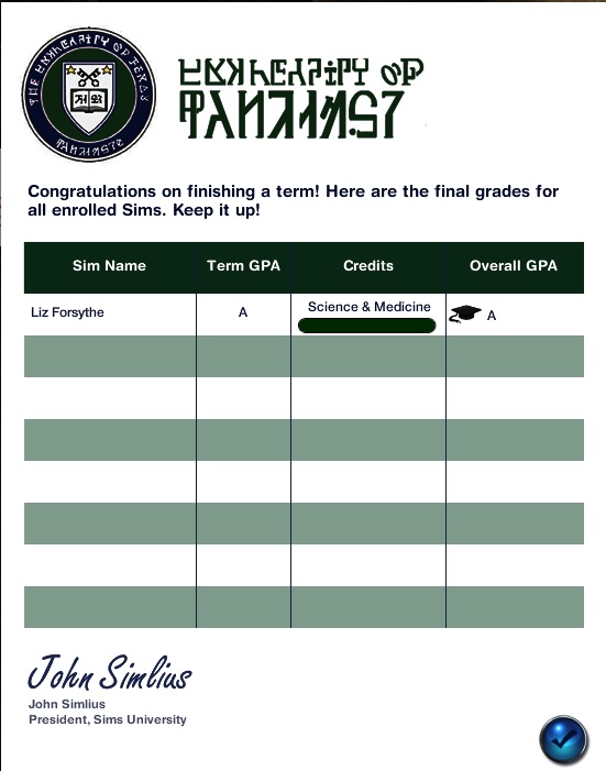 Liz spent her time researching samples. She reacheed level 10 in science during this term at University.
