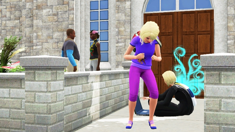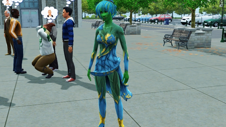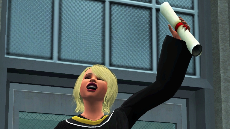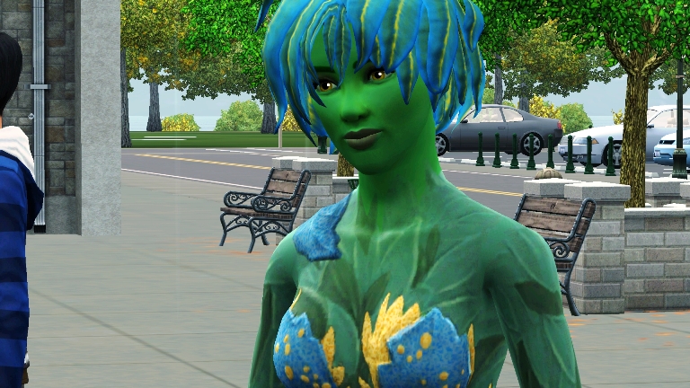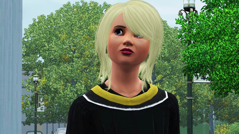 This Sim was outside during the graduation ceremony. She was a very unusual-looking Plant Sim.