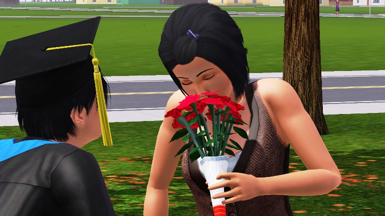 Bart met up with Jaclyn Grimm-Brunson after graduation was over. He decided to give her flowers.