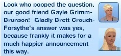 Gayle Grimm-Brunson asked Brett Crouch-Forsythe to marry her. He said yes!