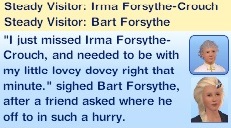 “‘I just missed Irma Forsythe-Crouch, and needed to be with my lovey dovey right that minute.’ sighed Bart Forsythe, after a friend asked where he was off to in such a hurry.”