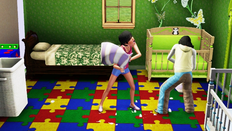Shantell Betts came home with Tammy after school. After doing their homework, they let off some steam by having a pillow fight in the nursery.