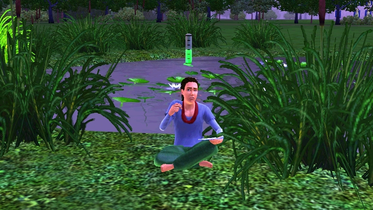 Derek was fishing and decided to do his homework at the pond right before dark.