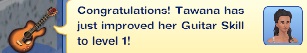 ~texansky~ “Congratulations! Tawana has just improved her Guitar Skills to level 1.”
