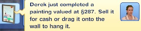 ~texansky~ “Derek just completed a painting valued at §287. Sell it for cash or drag it onto the wall to hang it.”