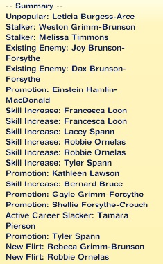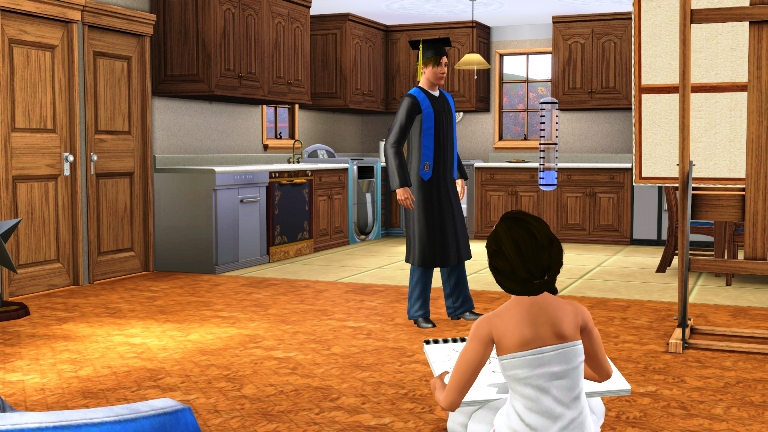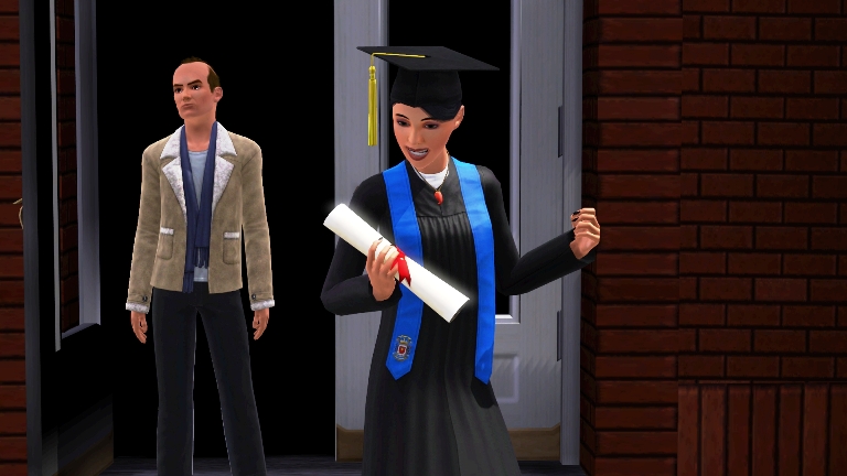 “Congratulations! Tammy has graduated from Community High School with Highest Honor! Her classmates have voted him Most Likely to Write a Best-selling Novel. The future is bright for this young graduate!; Diplomas and awards can be found in Derek’s inventory.”