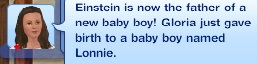 ~texansky~ “Einstein is now the father of a new baby boy! Gloria just gave birth to a baby boy named Lonnie.”