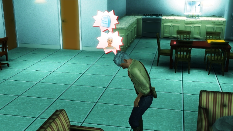 NOTE: I peeked at his stats. He has level 7 in Handiness and level 10 in Logic. He is single with no children and only knows one Sim (Jacob, I presume).