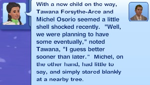 ~texansky~ “With a new child on the way, Tawana Forsythe-Arce and Michel Osorio seemed a little shell shocked recently. ‘Well, we were planning to have some eventually,’ noted Tawana. ‘I guess better sooner than later.’ Michel on the other hand, had little to say, and simply stared blankly at a nearby tree.”