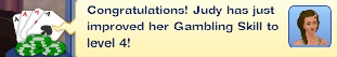 ~texansky~ “Congratulations! Judy has just improved her Gambling Skill to level 4!”
