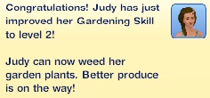 ~texansky~ “Congratulations! Judy has just improved her Gardening Skill to level 2!