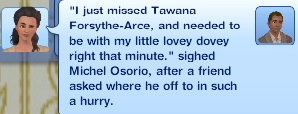 ~texansky~ “‘I just missed Tawana Forsythe-Arce, and needed to be with my little lovey dovey right this minute,’ sighed Michael Osorio, after a friend asked where he off to in such a hurry.”