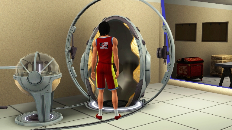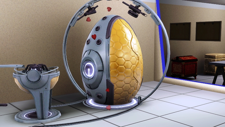Karen wished to have a baby with Zhan, so I had them try for a baby. This is the first time any of my Sims have used the Bot Workshop that way.