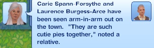 ~texansky~ “Carie Spann-Forsythe and Laurence Burgess-Arce have been seen arm-in-arm out on the town. ‘They are such cutie pies together,’ noted a relative.”