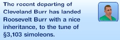 “The recent departing of Cleveland Burr has landed Roosevelt Burr with a nice inheritance, to the tune of §3,103 simoleons.”