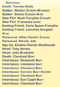 “Looks like Judy Burr-Kern has come into some money, §3,103 simoleons to be exact, after the passing of dear old Cleveland Burr.