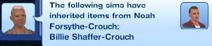 ~texansky~ “The following sims have inherited items from Noah Forsythe-Crouch: Billie Shaffer-Crouch.”