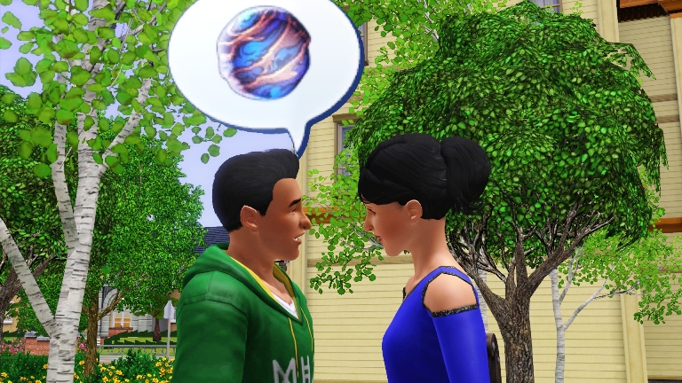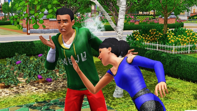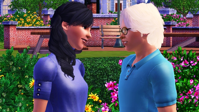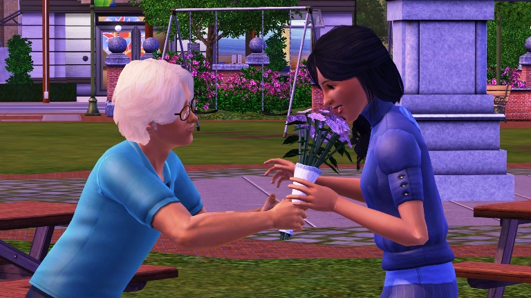 I thanked him by smacking him with another water balloon! He laughed again, then gave me purple flowers.