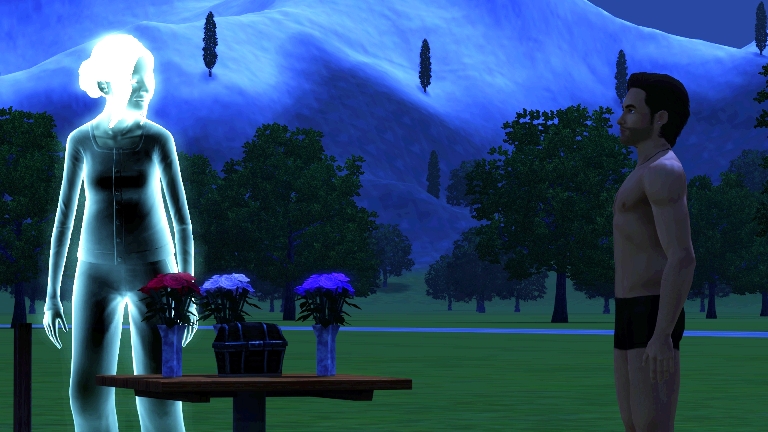 Cortney and I crawled into the tent for some alone time. I woke up in the middle of the night and discovered that Cortney had gotten up. When I exited the tent, he and my mother, Teri Forsythe, were staring at one another. I explained that my parents’ graves were under the black gum tree and this was my mother.