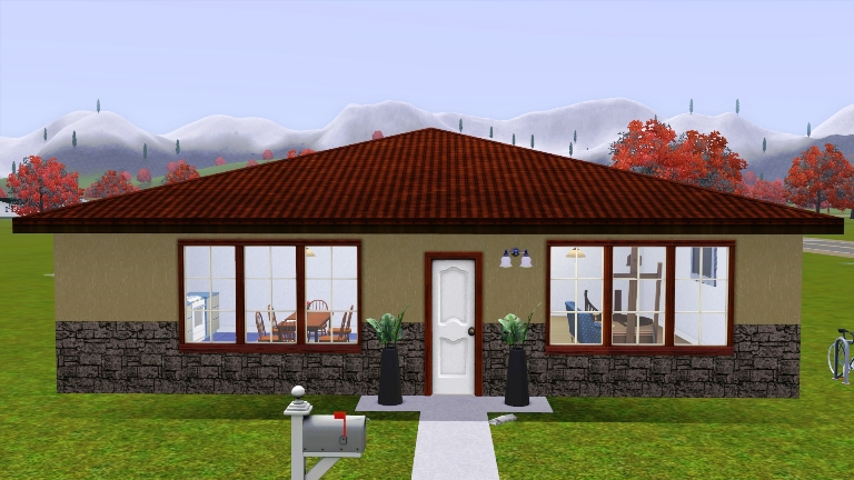 We hired contractors to build us a modest home. It had a stucco and brick exterior with a white door, marble walkway, brown trim and a brown roof.