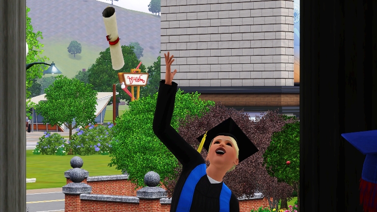 Angelia tosses her diploma in the air.