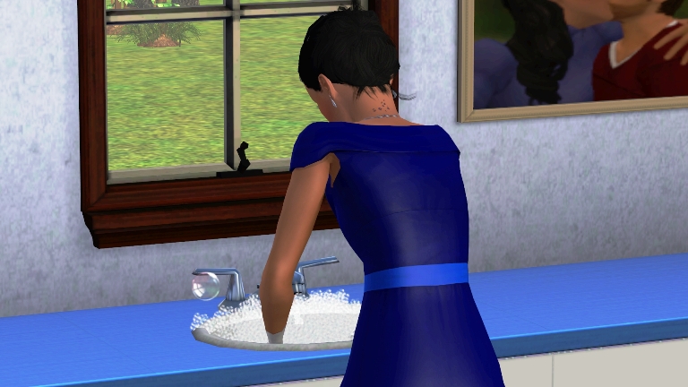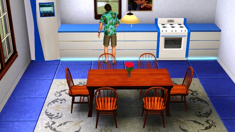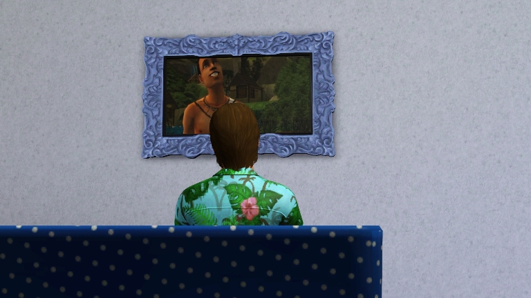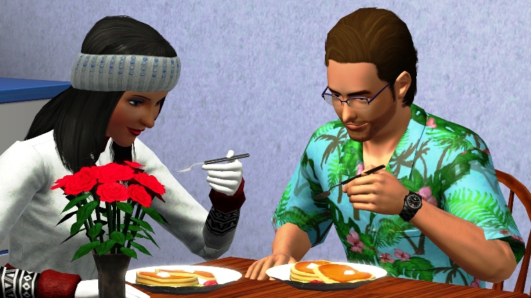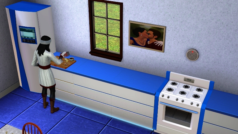 I decided today that the easel has been gathering dust long enough. I wanted to take painting classes at the school to learn the basics but we didn’t have enough Simoleons after paying the bills. It wasn’t long before Cortney interrupted me. He wanted a kiss and a bit more attention.