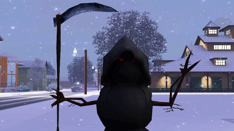 One of our birthday party guests made a Grim Reaper snowman. It gave me the creeps when I took the trash out.