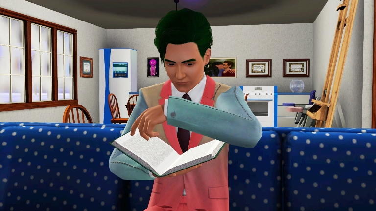 Amos joined the Firefighter career and sat down to read a cookbook. After finishing the second chapter, he started reading a handiness book.